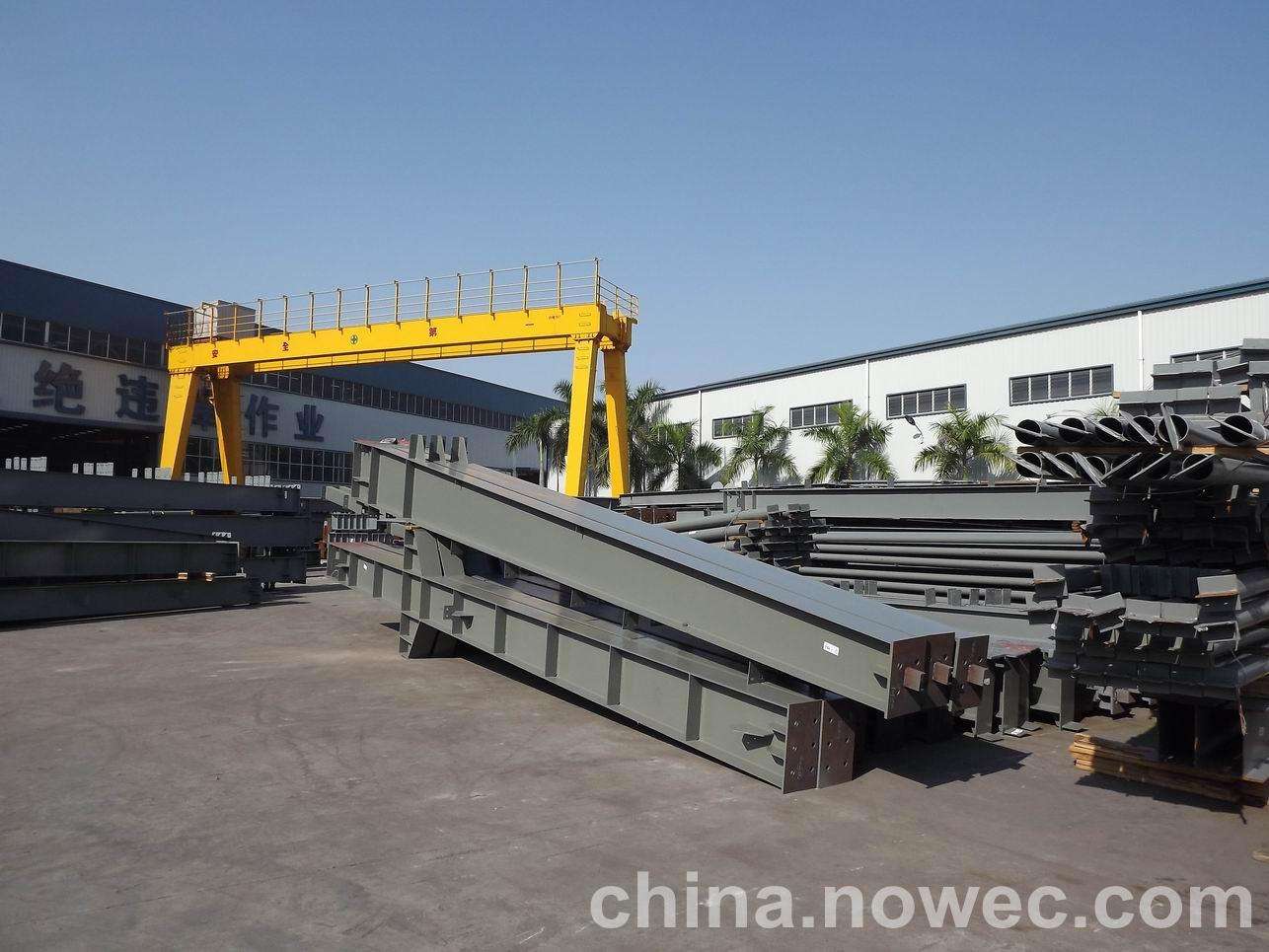 条状单元一般沿长跨方向分割,其宽度约为1~3个网格,其长度为l2或l2/2(l2为短跨跨距)。块状单元一般沿新泰网架平面纵横向分割成矩形或正方形单元。每个单元的重量以现有起重机能胜任为准。条(块)与条(块)之间可以直接拼装,也可空一网格在高空拼装。由于条(块)状单元是在地面拼装,因而高空作业量较高空散装法大为减少,拼装支架也减少很多,又能充分利用现有起重设备,故较经济。这种安装方法适用于分割后网架的钢度和受力状况改变较小的各类中小型网架,如两向正交正放四角锥、正放抽空四角锥等网架。